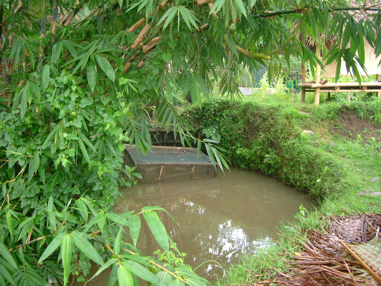 - manure, scraps added directly; animals can be penned over pond